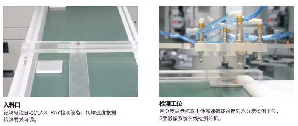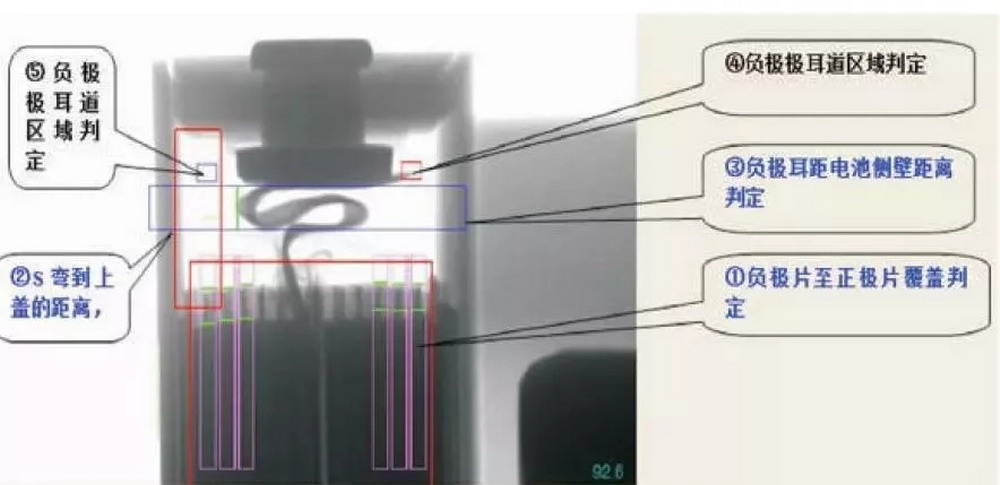 其中,全自動X光檢查機(XG5310)可對鋁殼電池頭部極耳內部結構和正負極片對齊度以及電池平面正負極片對齊度進行全自動檢測。