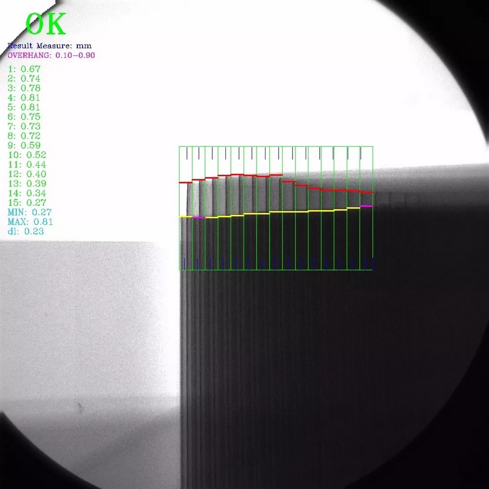 ▲鋁殼電池頭部極耳內部結構和正負極片對齊度檢測