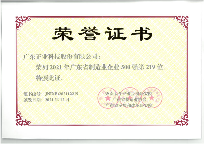 會上,主辦方發(fā)布了“2021廣東省制造業(yè)500強(qiáng)企業(yè)”名單。正業(yè)科技憑借卓越的技術(shù)能力、過硬的綜合實力,與華為、正威、富士康、美的等知名企業(yè)一同入選,榮列廣東省制造業(yè)企業(yè)500強(qiáng)第219位。