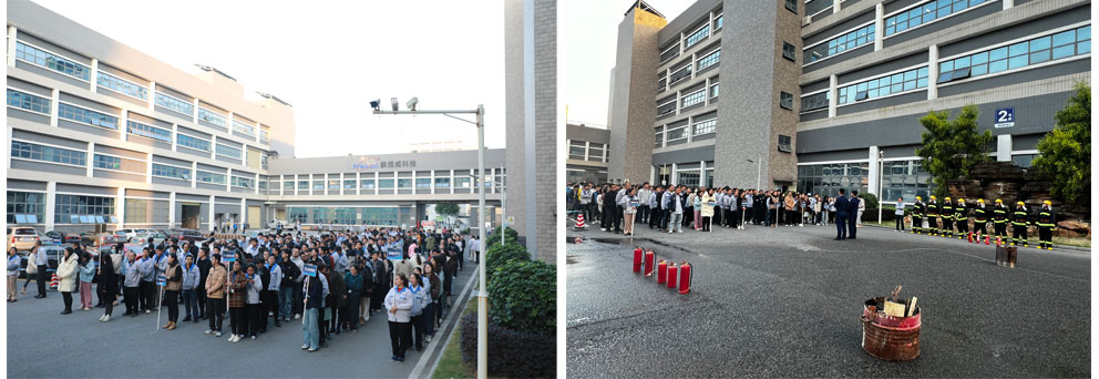 現(xiàn)場模擬園區(qū)4號樓2樓發(fā)生火災(zāi),響起消防警報,我司義務(wù)消防員前往處置,因火勢過大,請求松山湖消防大隊支援。在我司義務(wù)消防員的指引下,全體職工按照既定的逃生路線,迅速有序地往大樓前的空曠地帶撤離集合,全體職工緊張有序、彎腰前行,整個過程無踩踏擁擠、摔傷等現(xiàn)象,疏散過程有序嚴(yán)謹(jǐn)。