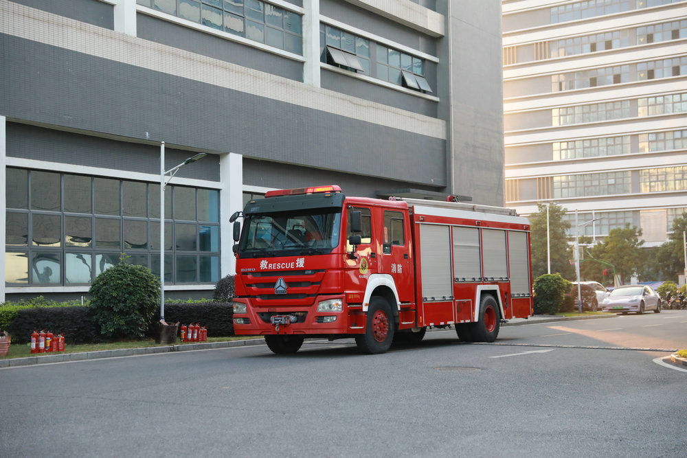 松山湖消防大隊接到模擬報警后,迅速到達(dá)現(xiàn)場,在確認(rèn)起火地點后,立即連接水帶、啟動滅火設(shè)備;滅火組、搜救組等小組各司其職,有序開展滅火救援行動。