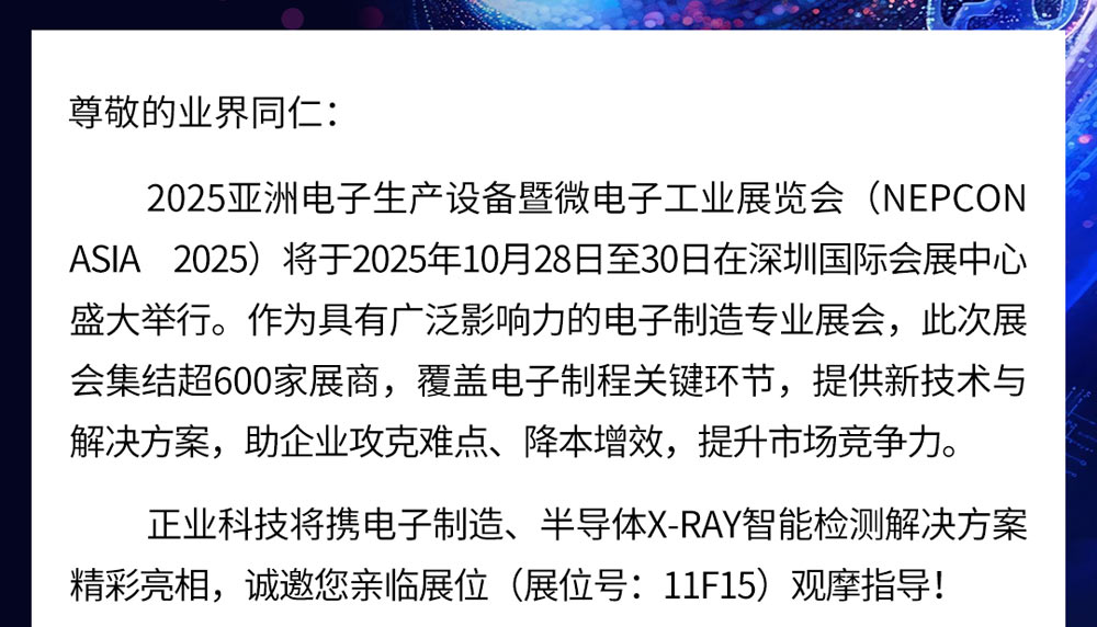 邀請(qǐng)函 | 正業(yè)科技誠邀您相聚2025亞洲電子生產(chǎn)設(shè)備暨微電子工業(yè)展覽會(huì)