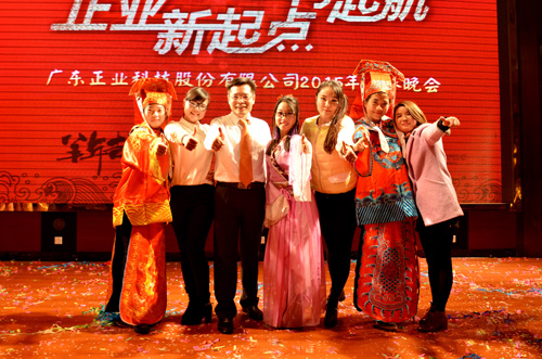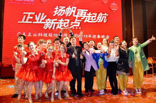 2015年2月9日廣東正業科技股份有限公司新春年會在帝金酒店隆重召開,董事長徐地華先生、經營專家梁志立先生、儀器裝備事業部總經理徐國鳳女士、材料事業部總經理徐地明先生及部分優秀供應商出席此次年會。