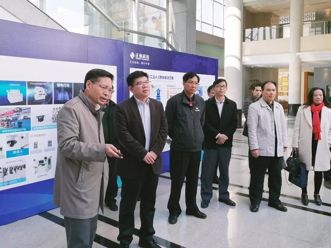 2017年12月19日,廣東省知識產權局局長馬憲民一行在東莞市知識產權局局長吳世文、副局長吳美良等相關領導的陪同下,蒞臨正業科技考察指導。正業科技董事長徐地華、技術中心總監梅領亮、管理中心總監黃洪輝等公司領導熱情接待了來訪嘉賓。