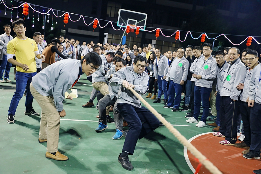第一個游戲環(huán)節(jié)是拔河比賽。共有6支隊伍參加比賽,最后由技術中心/中央研究院/財務中心組成的牛牛隊獲得了拔河比賽的冠軍。