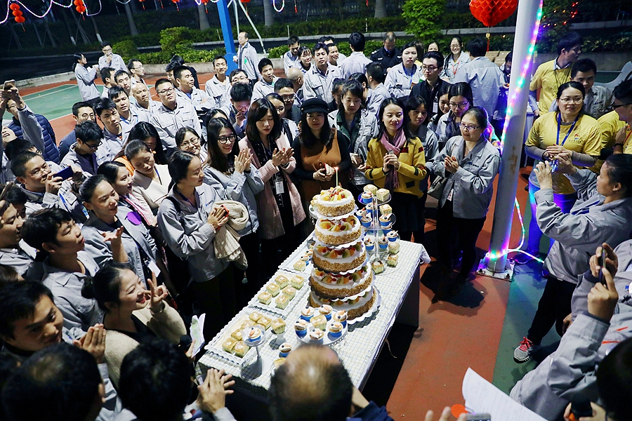 比賽過后,是一個充滿溫馨的環(huán)節(jié)——集體生日會。公司為本次生日會準備了豐盛的蛋糕、點心、水果、小食,并在主持人的帶領下,全場人員齊唱《生日快樂歌》,共同祝福我們的壽星們健康、平安、快樂!