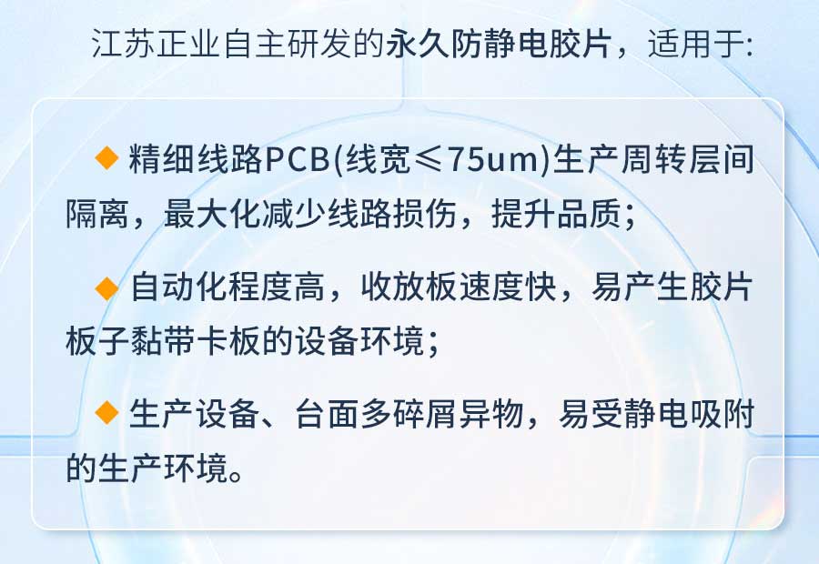 當前位置:首頁>產品中心>解決方案>PCB行業>正業永久防靜電膠片,護航精細PCB安全生產